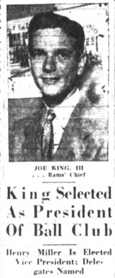 So it was no surprise that King III’s time as president of the Rams board ended in mid-July 1950 when the Southeastern League took over the team and turned it into the Ramblers — an “orphan” team the league oversaw and played all of its games on the road. That arrangement only lasted a week. The league ended the charade on July 25. The Rams were done, forever.