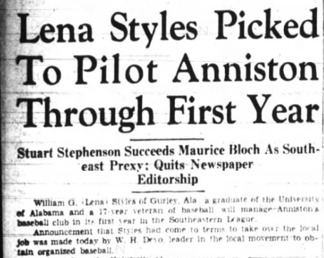 Or so said The Anniston Star newspaper: “Local boosters were elated over the agreement with Styles. He is rated as a hard worker, a good player and the proper sort of person to manage the local club.”