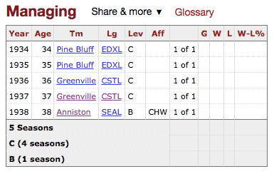 Styles, from Gurley, Alabama, up near Huntsville, had graduated from the University of Alabama and played for two MLB teams, the A’s and the Cincinnati Reds. He’d been a player-manager for four years in the minors, two in Pine Bluff, Arkansas, and two in Greenville, Mississippi. His 1935 Pine Bluff team won the pennant. In 1937 he took the Greenville team deep into the Cotton States League playoffs. That age hadn’t irreparably eroded his playing skills made him an easy choice.