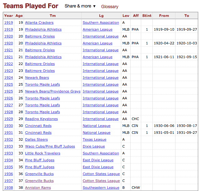 With stints in five different Major League seasons — 1919-21 with the A’s, 1930-31 with the Reds — Styles’ legacy in the top level of professional baseball carries a whiff of substance. But in those seasons he played in only 77 games, hit just .250 and never played more than 34 games in a single year. In fact, he was one of eight minor leaguers the terrible 1919 A’s brought up from their Atlanta farm team that September. That version of the A’s finished 36-104; making their roster didn’t require Cooperstown talent.