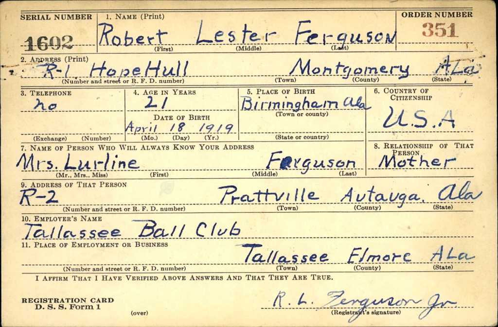 Ferguson died in 2008 at the age of 88, an Alabama boy who played for a roster of Alabama minor-league teams and stayed in Alabama when he was through. He’s buried in a church cemetery in the middle of Alabama, a state overrun with middles of nowhere that fill the spaces between the hills and valleys. His grave marker is typically simple: name, dates of birth and death, a Christian cross.