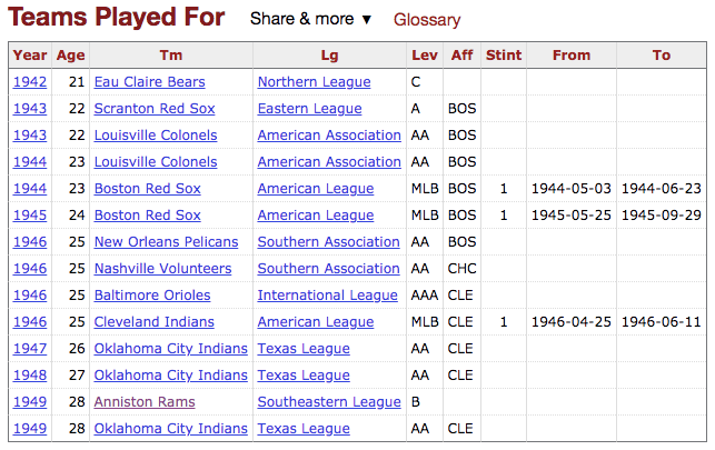 Plus, the ’49 Rams were rarely good and gave him little incentive to return. They finished 64-74, fifth in the SEL, cycled through two managers and set the stage for the franchise’s death-knell season the following summer. It was an odd collection of players: two pitchers (Woody Rich and Johnson) had Major League experience; shortstop Bobby Kline would make the show in the early 1950s. Pitcher Hugh Sooter threw a no-hitter that July.