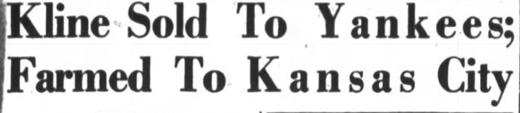 Kline was oblivious that a Yankees scout, Spud Chandler, had trailed the Rams earlier that summer. Days before the SEL folded the Rams because of their steep financial debts, the league sold Kline’s contract to the Yankees, who sent him to their Class AAA farm team in Kansas City.