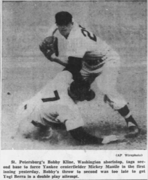 Kline never played for the Yankees, but that’s not relevant. (His one Major League season came with the Washington Senators.) There nevertheless is a direct line between Kline’s youthful baseball days in St. Petersburg, Florida, and the Yankees’ decision to rescue him from Anniston’s near-death Southeastern League team in 1950.