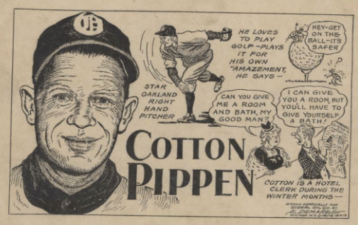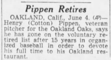“Cotton Pippen, the old (Sacramento) Solon pitcher, is a mixologist in Oakland. He says he has no plans for a baseball comeback,” the Sacramento Bee wrote in October 1953.