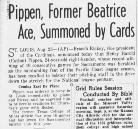 “Losing to Philadelphia in his first start does not necessarily mean that Pippen will not help the Cardinals,” The St. Louis Post-Dispatch wrote. “The Phils scored five runs off him — and many a pitcher has won a game when the enemy scored more runs than that. His control was remarkable (the four bases on balls he issued were all intentional) and he mixed his pitching nicely. It happens that he didn’t fool the batters always … His teammates didn’t seem to be disappointed in him even though he failed to win, for it looks as though he has possibilities.”