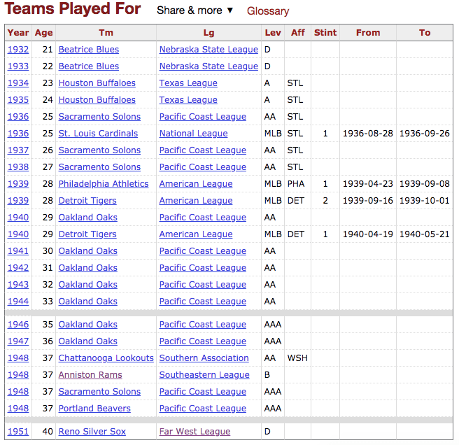 Talent kept providing him opportunities, however. When he faced a young Williams in the future Hall of Famer’s PCL debut with San Diego, Pippen struck him out three times. After leaving the Cardinals he won 16, 15 and 17 games for the Solons in 1936-38. On notice were the Philadelphia Athletics, who took him in the Rule 5 draft and installed him in their rotation in 1939. He went 4-11 before the A’s placed him on waivers; signed by the Tigers, Pippen made three appearances for Detroit that fall and four more in 1940.