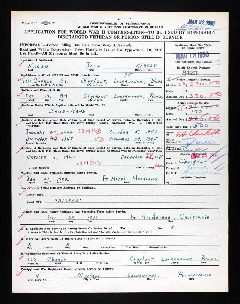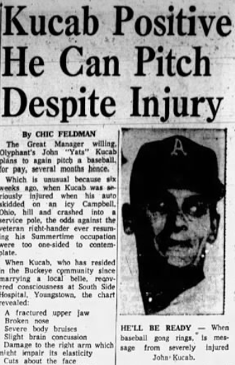 In 1951, when Kucab was enjoying his first spring in a Major League camp with the A’s, an Associated Press reporter in West Palm Beach, Florida, detailed the war’s toll on the 31-year-old Pennsylvanian’s career.