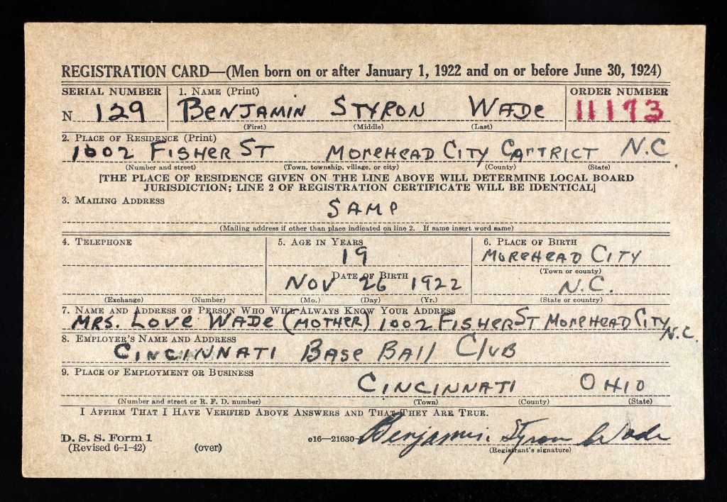 Wade played three seasons before the war, starting as a 17-year-old with two low-level Brooklyn farm teams, then with Cincinnati’s squads in Indianapolis and Syracuse. Absent the war, the young right-hander might have debuted with the Reds in 1943. Instead, he signed with Pittsburgh’s Southern Association team, the Birmingham Barons, in the spring of 1946, hoping to rekindle the momentum shelved three years prior.
