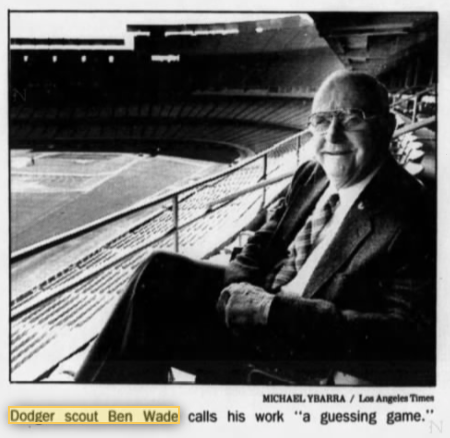 Wade, however, didn’t survive the 1980s with the Dodgers. Criticism of stagnant draft results and poor free-agent signings lingered. Though the team won the 1988 title, the organization’s minor-league teams posted three straight losing seasons in the mid-’80s. In 1987, the Sacramento Bee noted that only five of the Dodgers’ second-round draft picks in the last 23 years had advanced to the Major Leagues, and that Wade’s department had passed on pitcher Roger Clemens and outfielder Eric Davis. Wade retired after the 1990 season, his legacy as a front-office icon bruised but not broken.