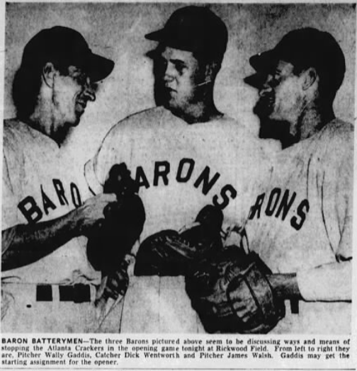 That ascension didn’t happen because Wentworth wasn’t good enough, truth be told. His high-water mark happened when he batted .295 with the Barons in 1945, after which he was optioned to Class B Charlotte and called “a great prospect” by Hornets manager Spencer Abbott. “Unless I miss my guess, he’ll be back at (parent club) Washington in a year or so. He reminds me of Gabby Hartnett.” But Wentworth never hit for power and his defense was a liability; he made 33 errors in his first pro season in Class D Erwin, Tennessee, and 21 more with the Barons in ’45.) That he couldn’t break into the Major Leagues, either as a catcher or pitcher, during the talent-depleted war years signaled the eventual termination of his career. After the 1946 season, he never again rose above Class B.