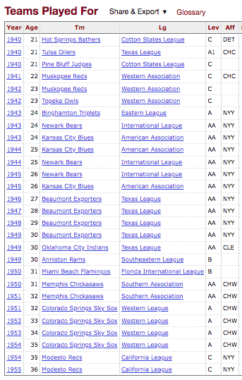 It’s remarkable that Crosby’s best years in the minors occured after he left Anniston and well after his 30th birthday. In 1951, Crosby hit .271 in Colorado Springs, the Chicago White Sox’s Class A team in the Western League where players often called him “Dad” or “Gramps.” Two years later, he hit .302 with 25 home runs — four coming in a recording-setting game against Pueblo, one right-handed and three left-handed.