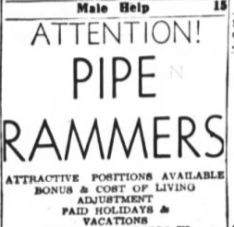 Prior to mechanization, most of the pipe-shop work was done by hand. It wasn’t for the weak. “A man’s hand would be like a piece of leather, just solid callous,” Roy Hathorne, a former shop engineer, told The Star. Frank Houston, a former shop worker, described those jobs as “about the hardest work I know of in the country, and one of the best-paying jobs I knew of in Anniston when I started.” Workers during the Rams’ existence made about $35 a week. Help-wanted advertisements for pipe rammers were common in The Star’s classified pages.