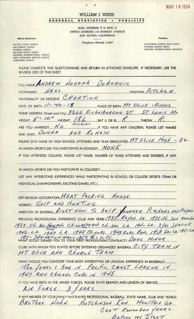 Given another spring tryout the following year, Dobernic pitched well enough to lead reporters to wonder if he’d break camp with Chicago. He struck out six in an exhibition appearance against the crosstown Cubs. He didn’t allow a hit in a three-inning stint against the Pacific Coast League’s Los Angeles team. Promise aside, Dobernic still threw as many balls as strikes and started the season in the minors.