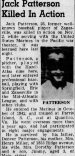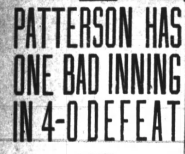 When the Rams optioned him to Greenwood, Mississippi, The Anniston Star reported that he instead chose to “return to his Zanesville, Ohio, home for a tonsillectomy in the belief the operation would ease his ailing arm.” When he did report to his new team, he stayed less than a month before rejoining the semi-pro team in Zanesville. With a Class C team in Erie, Pennsylvania, in 1941, Patterson didn’t make it through the year before again going home to Zanesville. In 1942, back with Erie, he voiced his displeasure to a reporter for the local newspaper after again being cut loose.