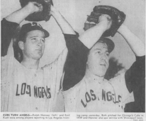 Hamner never again pitched for the Rams. Two seasons in Shreveport, three years in the Navy Reserves, and four partial seasons in the big leagues turned the former Ram into a mid-30s journeyman who pitched three seasons in the early 1950s with Pacific Coast League’s Angels. He made headlines in 1949 with Shreveport when he fought the manager of Dallas’ minor-league team on consecutive nights — including one fistifcuff during batting practice. He would have played a fourth season in Los Angeles in 1953, but that spring he told the Angels he wanted to play instead with Shreveport so he could oversee his family’s farm implement business in Bradley, Arkansas — pitching at night in Shreveport and working during the day at the family store, his chores separated by a 50-mile commute. The Angels obliged.