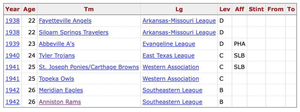 A month later, on June 17, Rams president Loy Gunter gave David his unconditional release. The second baseman signed with Meridian, playing the rest of the 1942 season with the SEL’s worst team. Then the world’s realities — war, family, employment — took hold of his life.