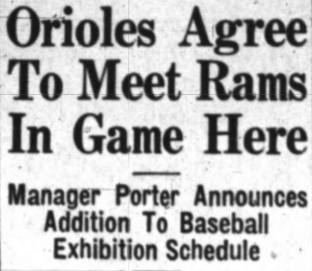 Thomas and Porter spoke in Baltimore and again on the phone once the Rams’ manager reached Anniston. By March 21, the deal was set. The Orioles would alter their exhibition schedule and stop at Johnston Field after they broke camp in Haines City, Florida.