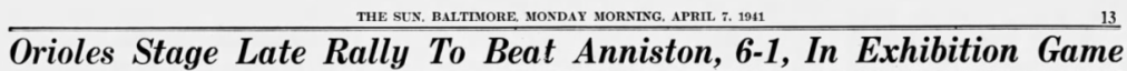 These mid-century O’s weren’t descendants of the franchise that left Baltimore and eventually morphed into the New York Yankees, or predecessors of the modern-day Orioles who started in Milwaukee as the Brewers and moved to St. Louis as the Browns before relocating to Maryland. These Orioles were the International League O’s, who nonetheless made headlines when they came to Anniston in April 1941.