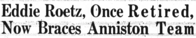 In two games on a Labor Day Monday — the first in the afternoon in Gadsden, the second at night in Anniston — Roetz went a combined 6 for 7 with three home runs, four RBIs and three runs scored. “Eddie Roetz,” The Anniston Star’s Marshall Johnson wrote, “held his own individual Labor Day celebration.” But it went for naught. The Rams swept Gadsden, 6-4 and 4-0, and finished 71-70, but remained a half-game shy of the final playoff berth when Selma beat Montgomery that afternoon. Selma was in, Anniston was out, the teams separated by .003 percentage points in the standings. The Rams’ three more wins than the Cloverleafs proved a statistical quirk, not a determining factor.