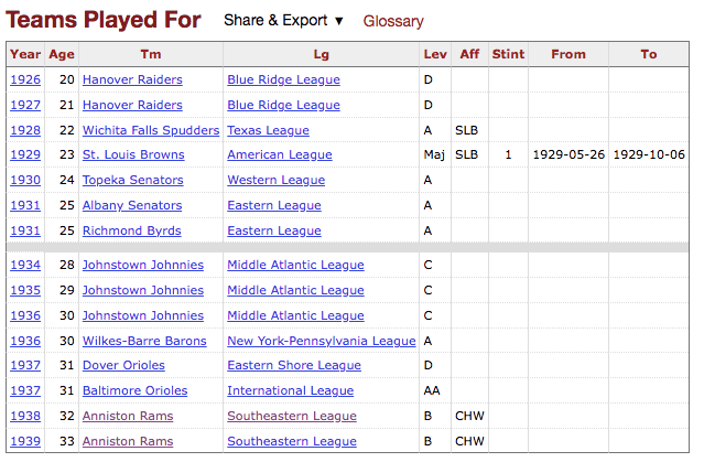 Roetz’s prowess couldn’t prevent the expansion Rams from losing 86 games and finishing in seventh place in the Southeastern League. (Anniston’s pitching was particularly putrid, allowing a league-worst 783 runs. It also hit .249, better than only one other team.) But on the final day of the ’39 season, with the Rams’ postseason chances resting in part on a doubleheader sweep against rival Gadsden, Roetz enjoyed a day that few Rams would ever surpass.