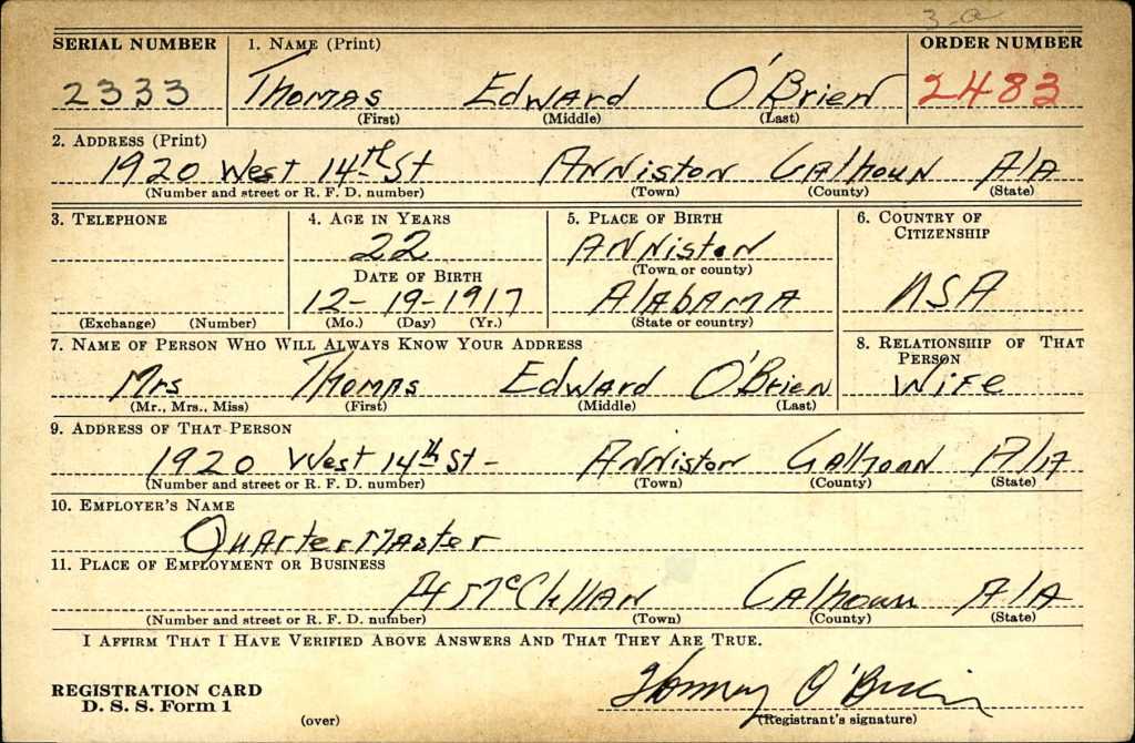 O’Brien died in 1978 a month before he turned 60. He’s buried in Anniston’s Edgemont Cemetery.