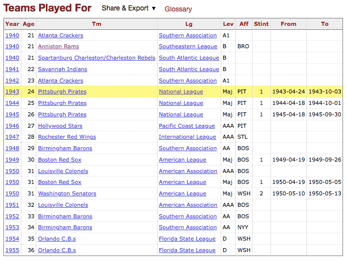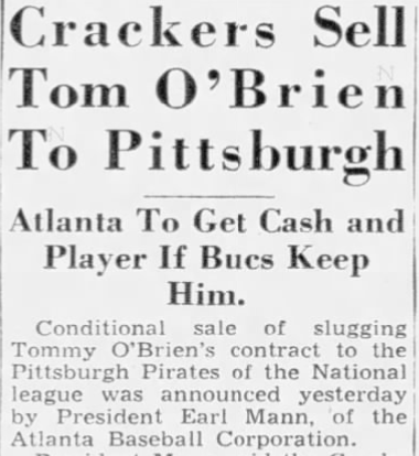 O’Brien played — but not for the Crackers. He instead joined the Pittsburgh Pirates, whose roster had been decimated by the military and whose top prospects, notably future Hall of Famer Ralph Kiner, who was flying planes for the Navy, weren’t available. It’s unclear whether O’Brien gamed Mann to force his move to a Major League club. An outfielder and third baseman who dabbled in football at the University of Tennessee, O’Brien’s prodigious bat might have warranted a Major League call-up without the war’s interference. But it’s indisputable that O’Brien benefitted from the sport’s wartime deficiencies that gave big-league opportunities to players stuck on farm-team rosters.