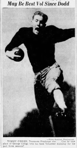 The lone exception was, predictably, The Star, whose reporters had documented O’Brien’s exploits from the beginning. Writer Marshall Johnson admitted that a tutor couldn’t solve O’Brien’s academic shortcomings in Knoxville. But Johnson also chose to give O’Brien credit for putting off baseball’s paycheck — Detroit and the Chicago White Sox had sought him early on — in order to use football talents for a college degree, a laudable but unsuccessful trade-off for a married man and a father. “It was all too much for Tommy, so he gave up the dreams of gridiron glory and accepted the hard facts of life, that a man has got to go to work some day.”